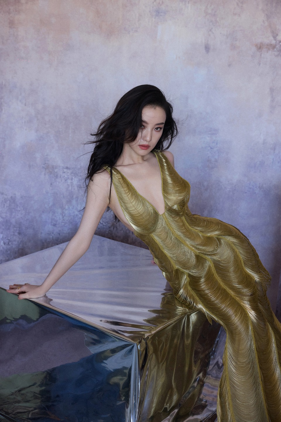 倪妮层叠交织的线条 绘制出超越空间的金色浪潮