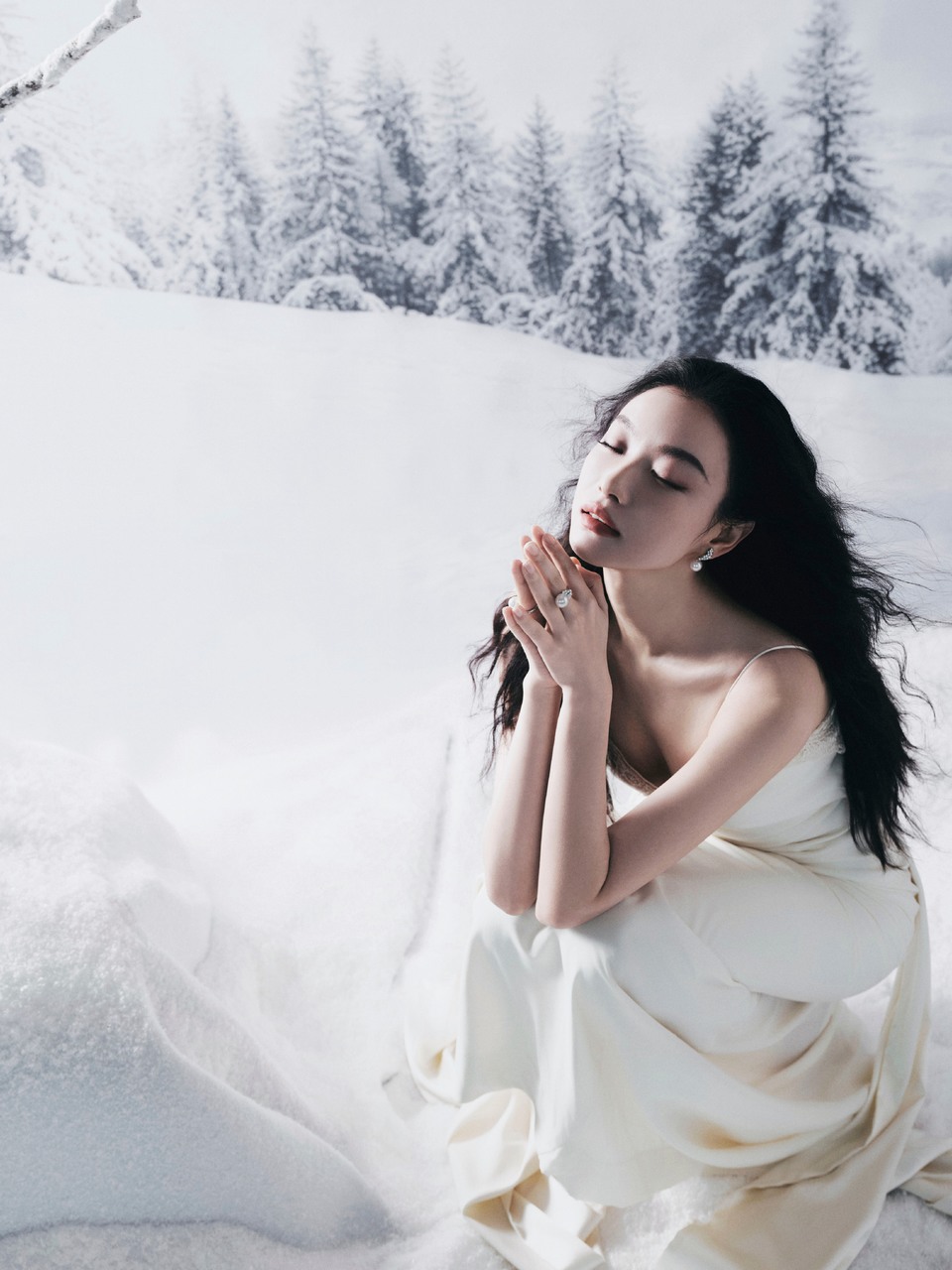 倪妮冰雪为幕白裙为裳 清冷雪色裹挟优雅