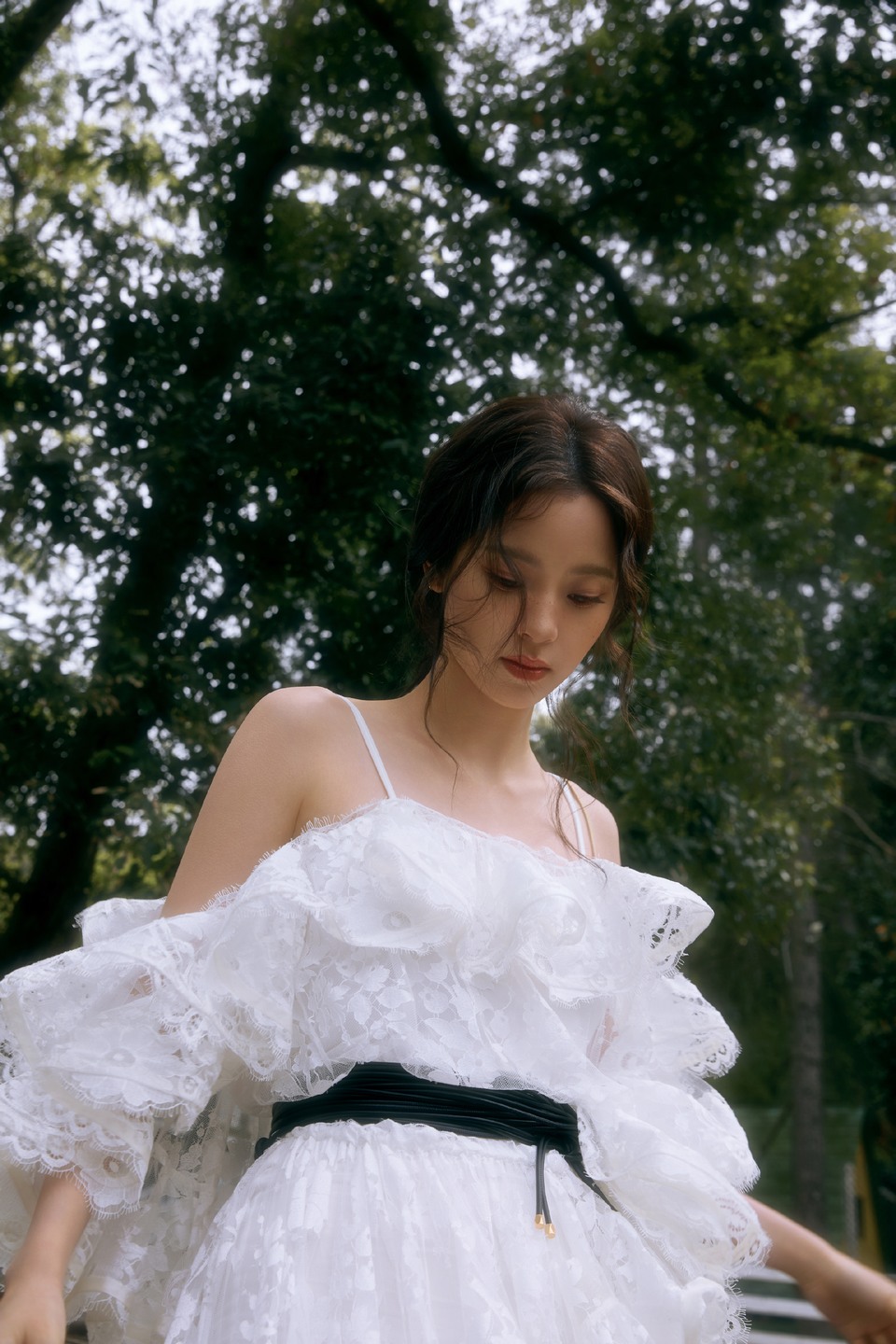王珞丹置身于盎然绿意