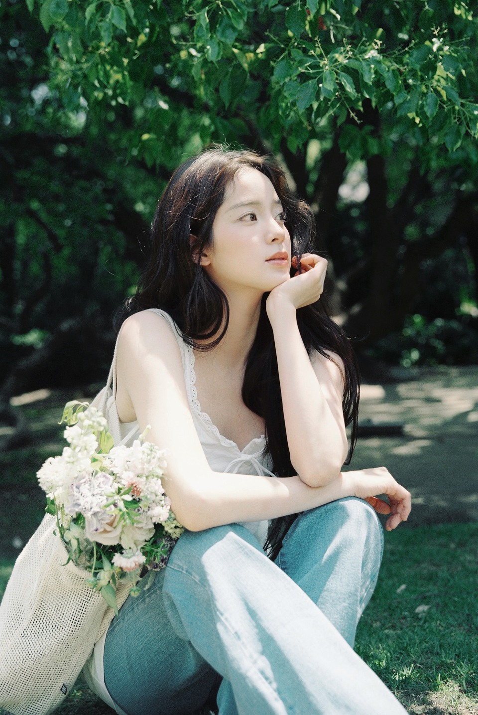 欧阳娜娜定格此刻美好 林间光斑是天然的滤镜
