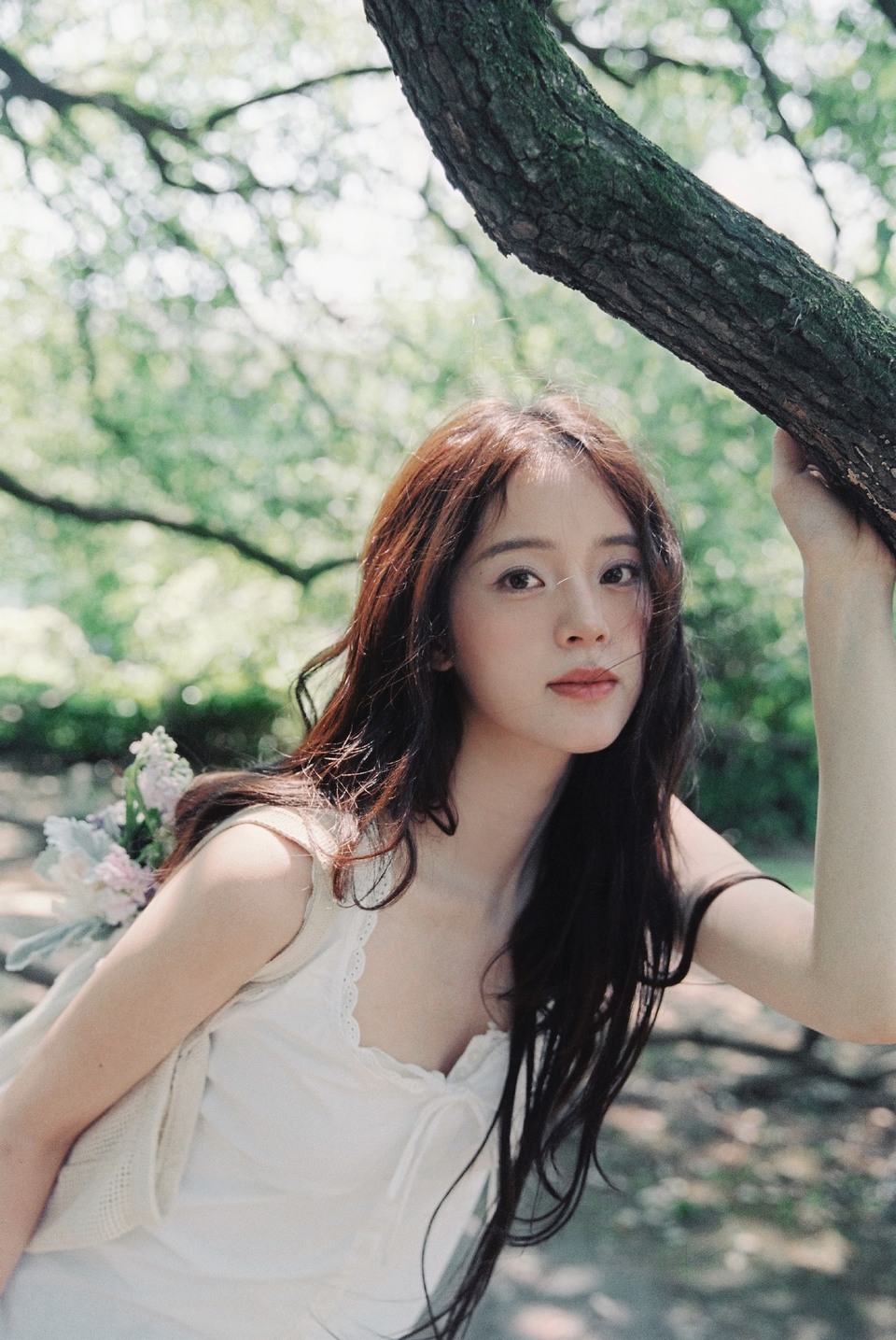 欧阳娜娜定格此刻美好 林间光斑是天然的滤镜