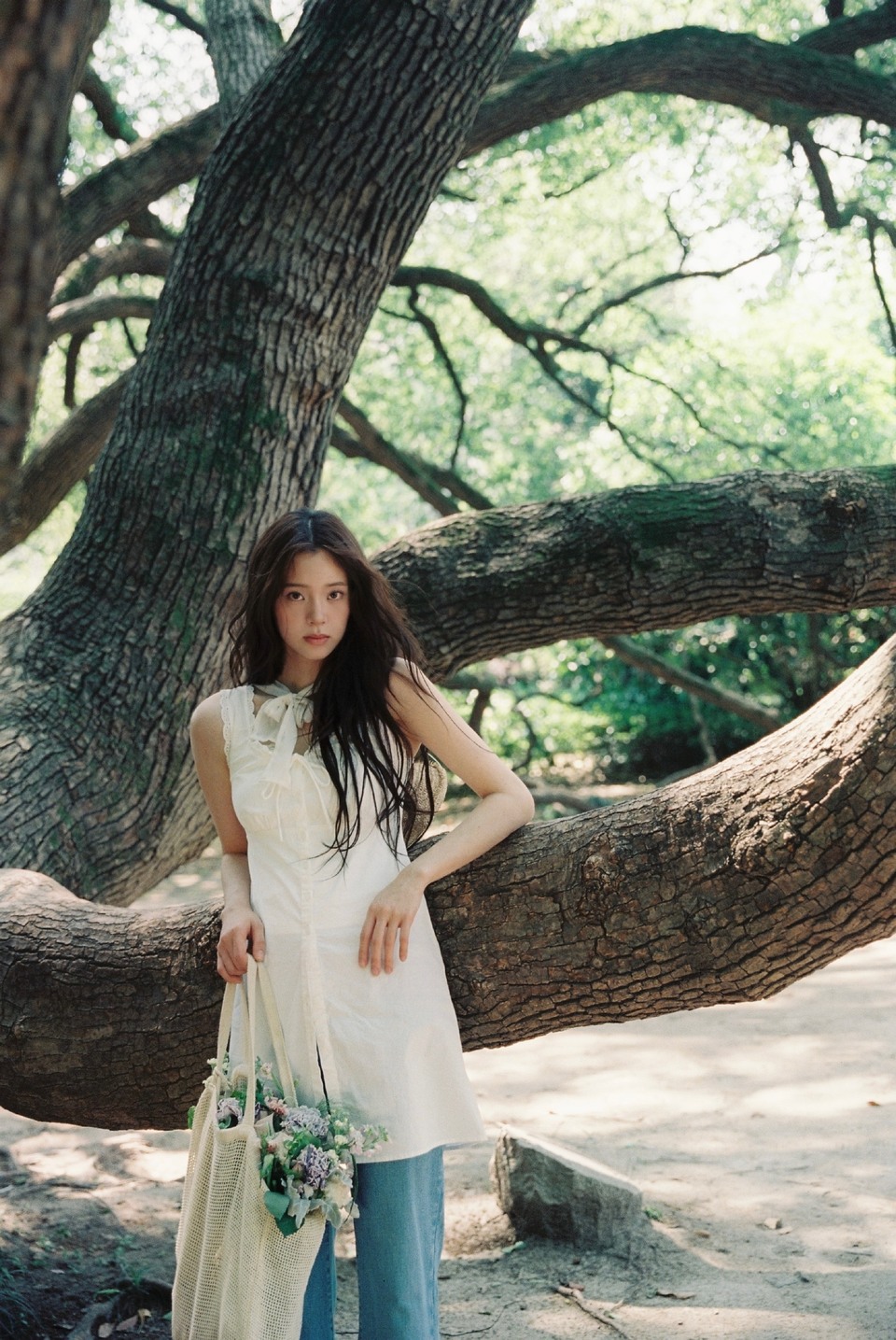 欧阳娜娜定格此刻美好 林间光斑是天然的滤镜