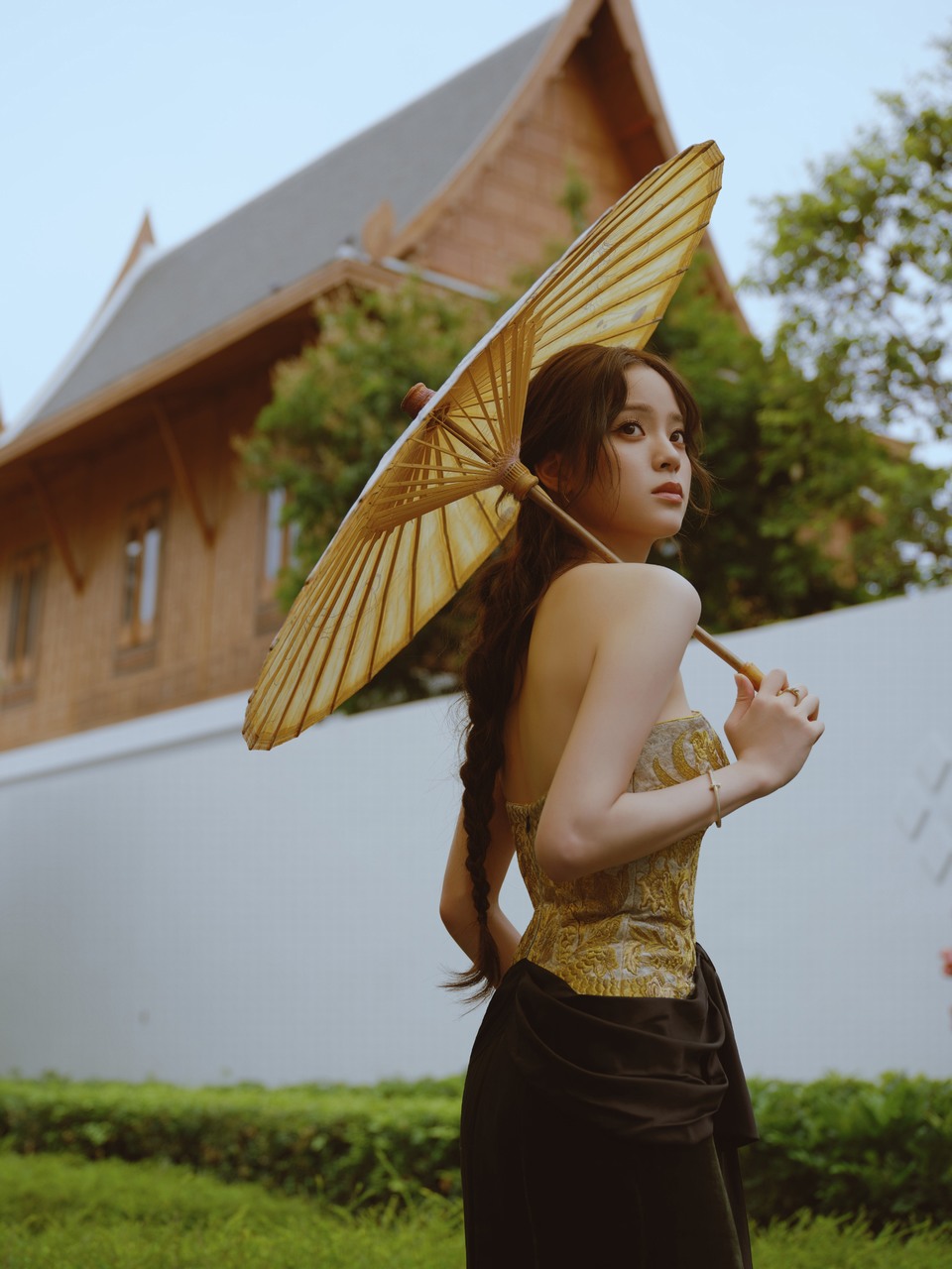 谭卓裙摆盛放新荷夜色
