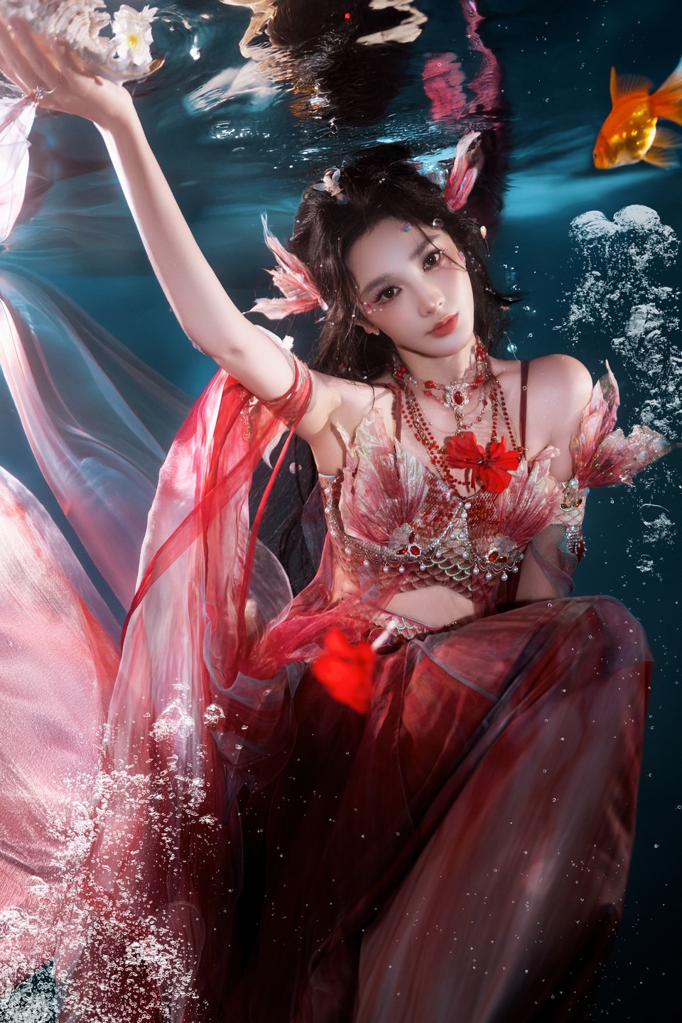彭小苒红纱轻游摇曳一弯醉乡珠梦 晖映万转鳞螺绮光