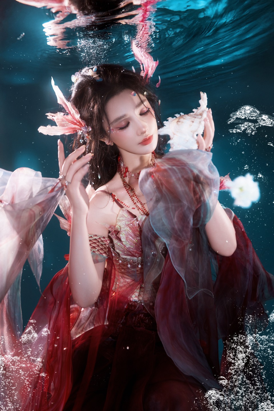 彭小苒红纱轻游摇曳一弯醉乡珠梦 晖映万转鳞螺绮光
