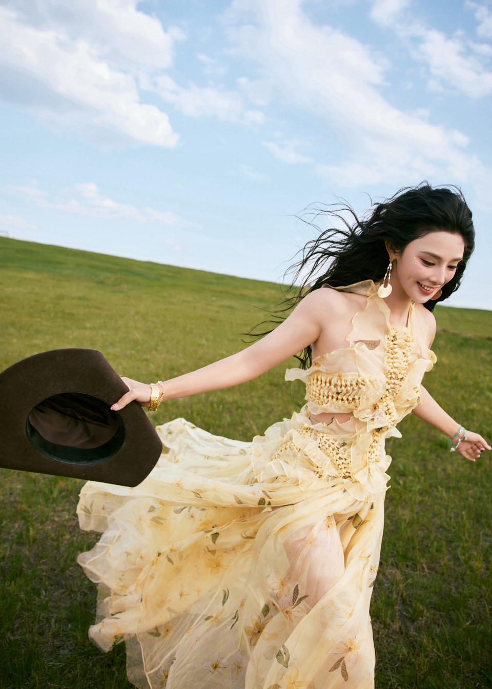 彭小苒踏往无边旷野自在随心 草长晴空更衬潇洒本色