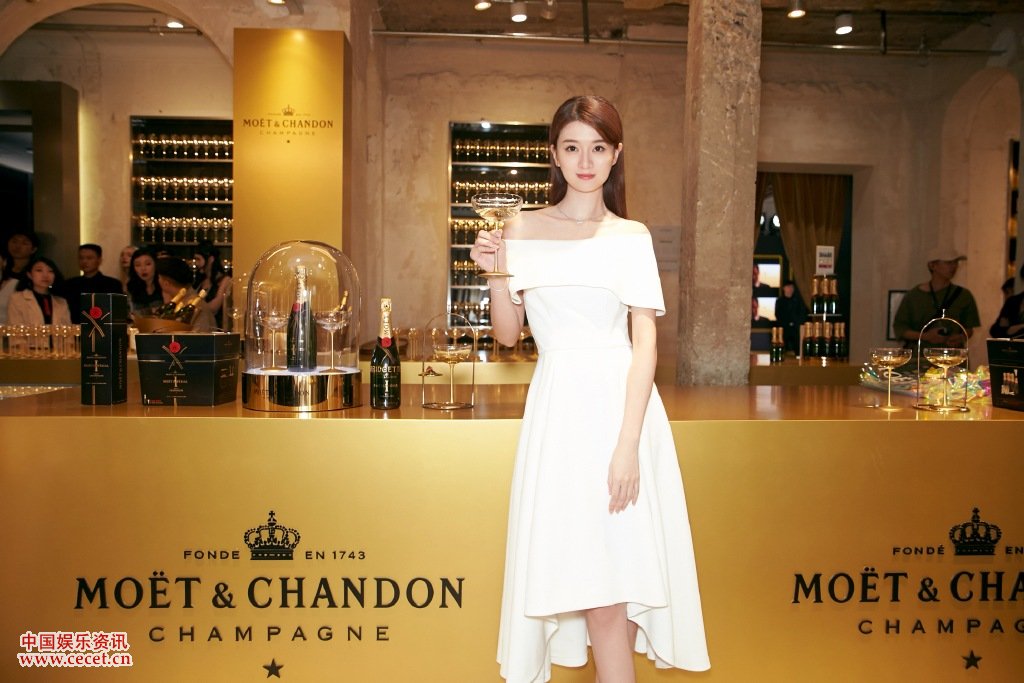 乔欣一袭纯白色一字领礼服亮相 灵动可爱