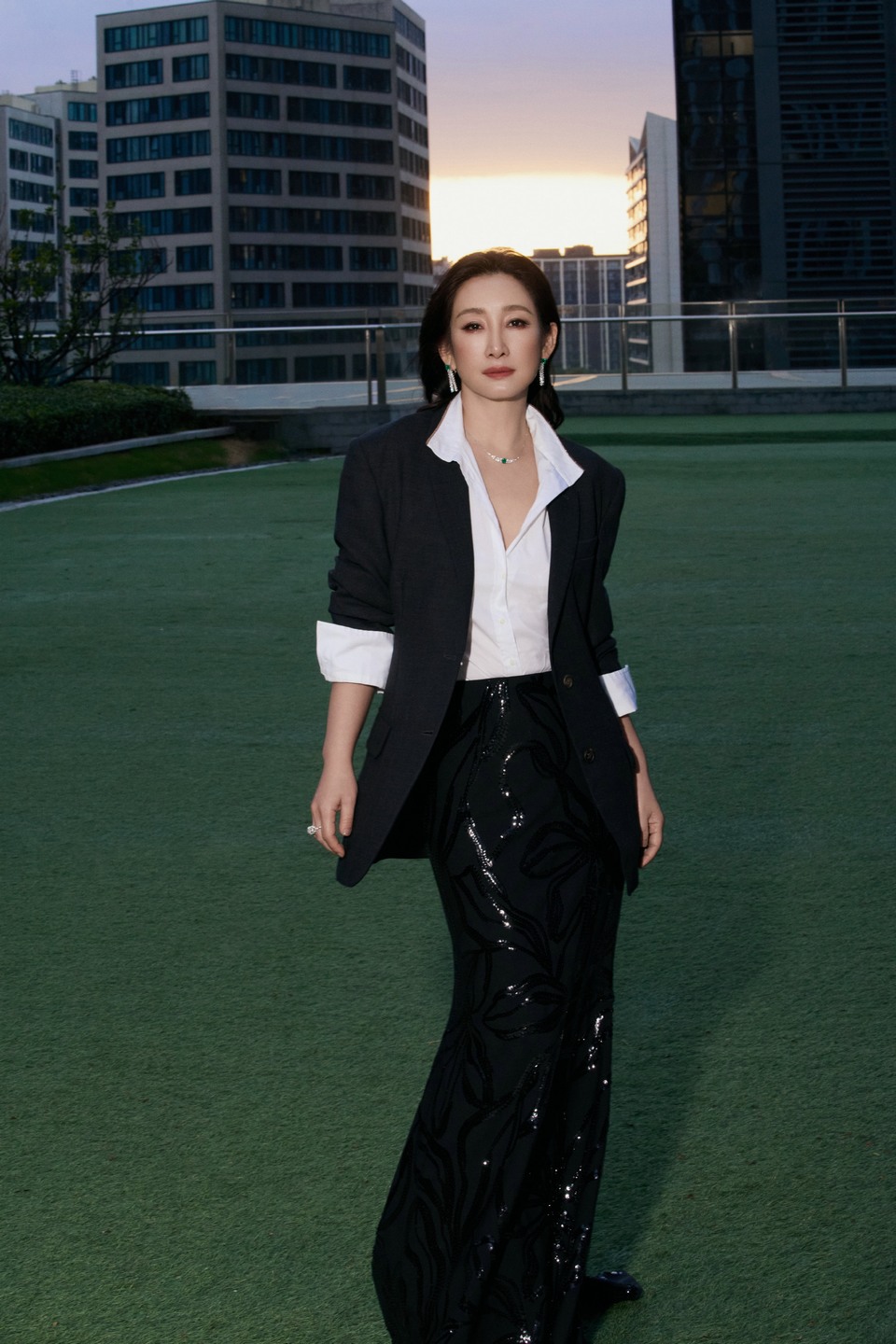 秦海璐黑白定格飒爽瞬间 花影摇曳生光尽显潇洒态度