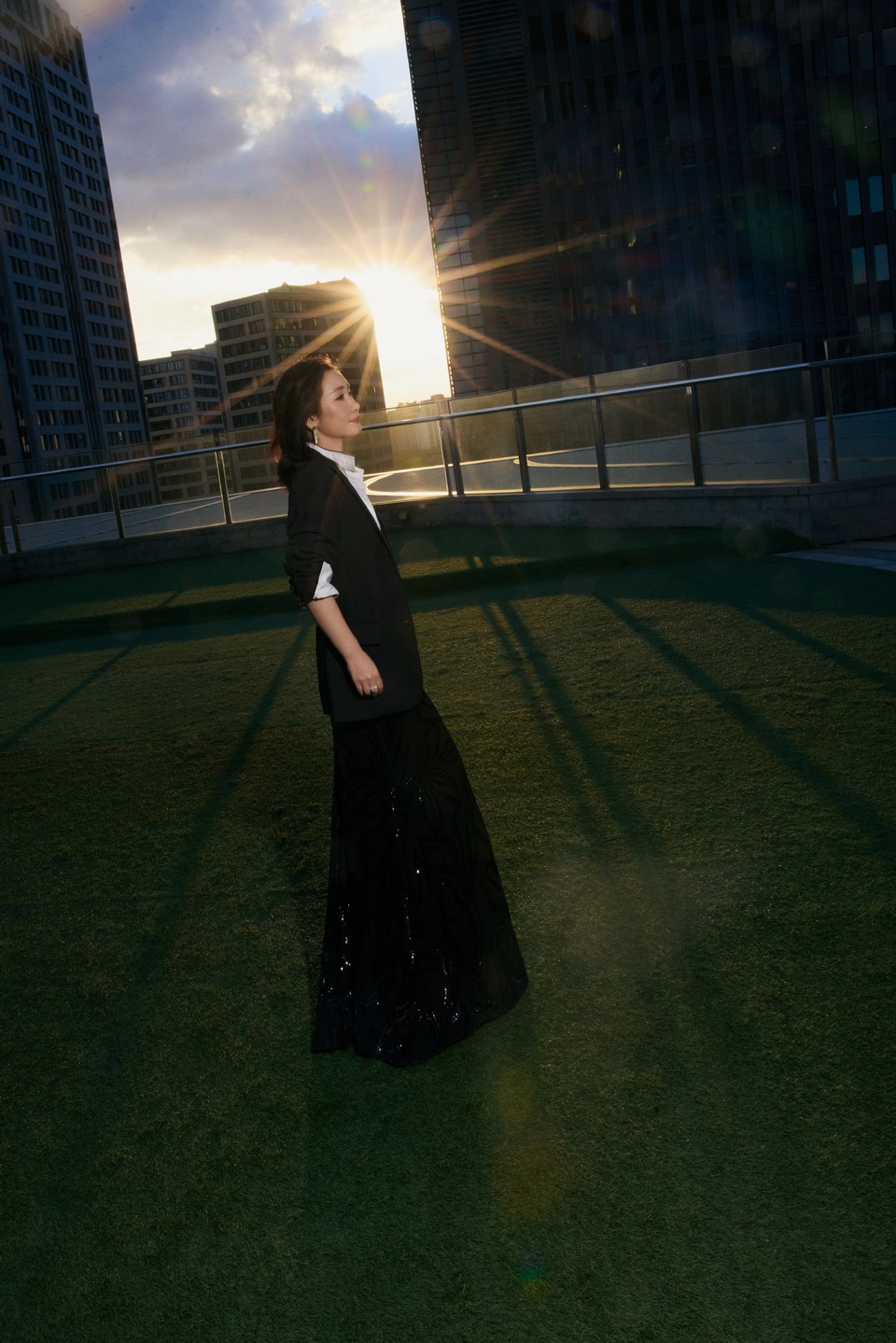 秦海璐黑白定格飒爽瞬间 花影摇曳生光尽显潇洒态度