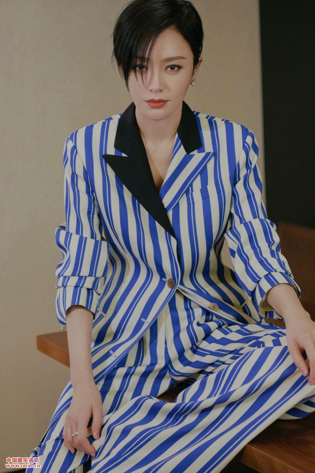 秦岚蓝白条纹套装亮相 帅气清冷霸气十足