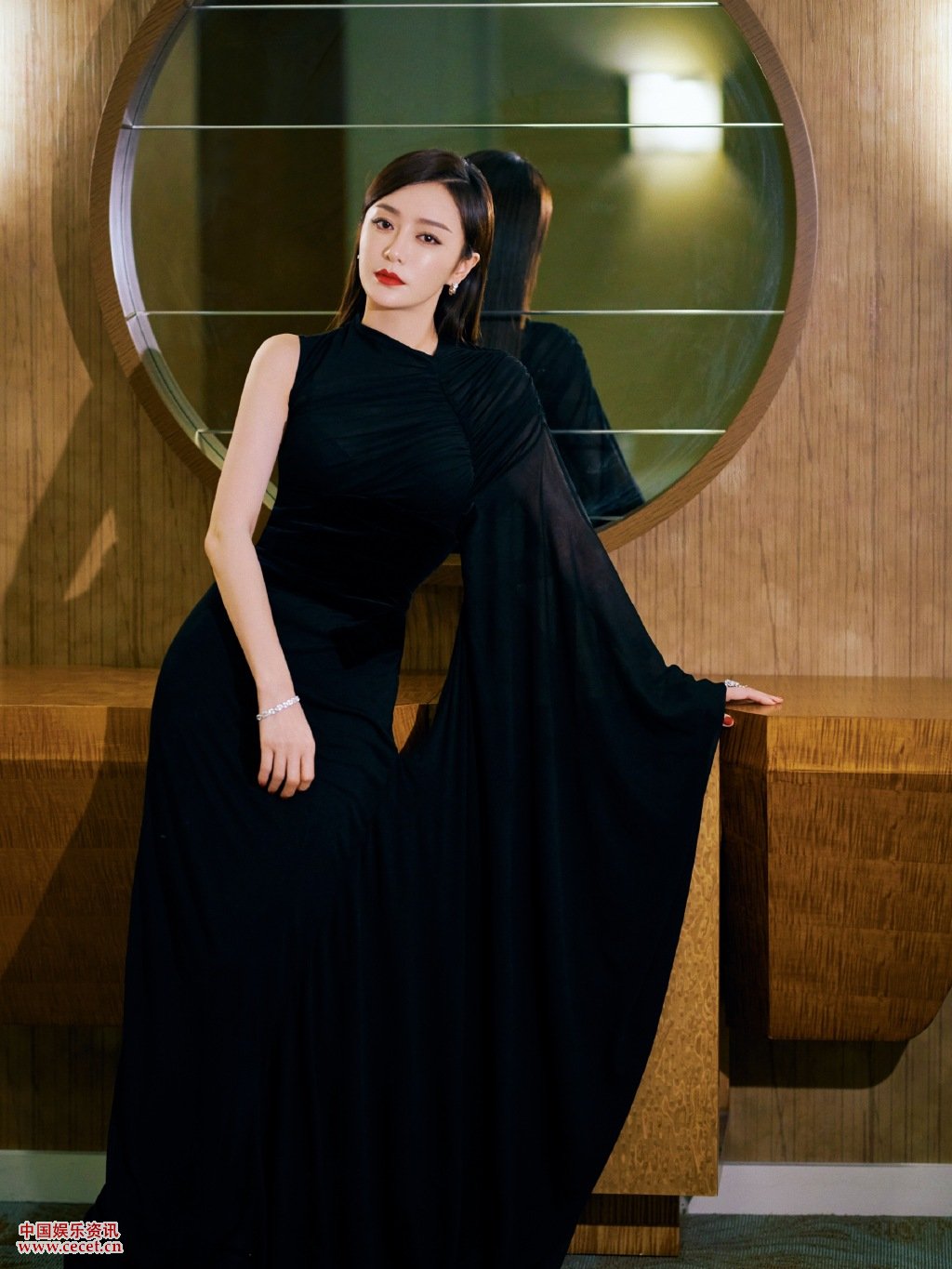 秦岚黑色长裙依身楼梯 身材性感名媛范儿