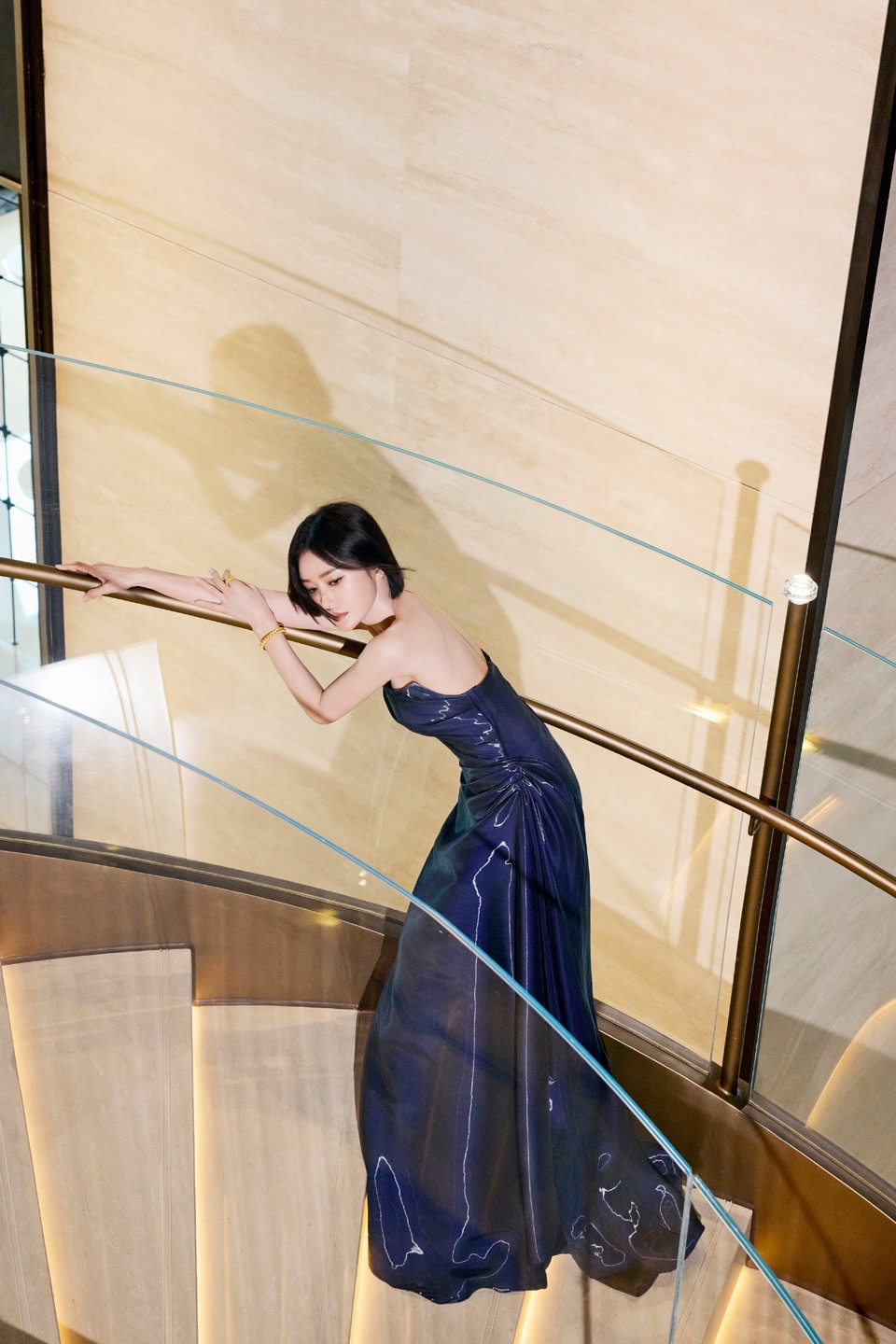 秦岚抹胸长裙勾勒从容 赴一场光影流转的鎏金之约