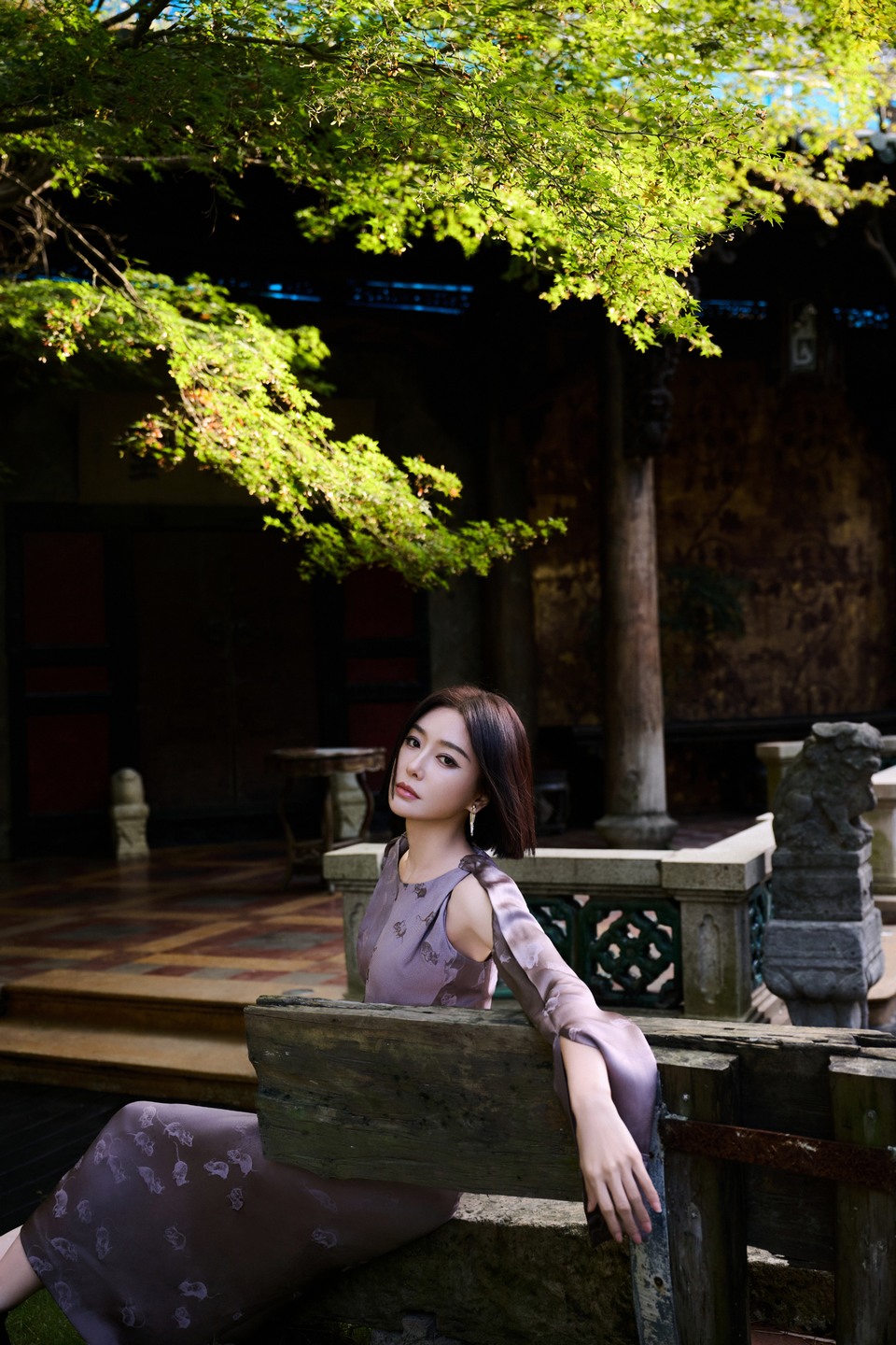 秦岚风起袖扬一步一景 凝灰韵色丝缎写意