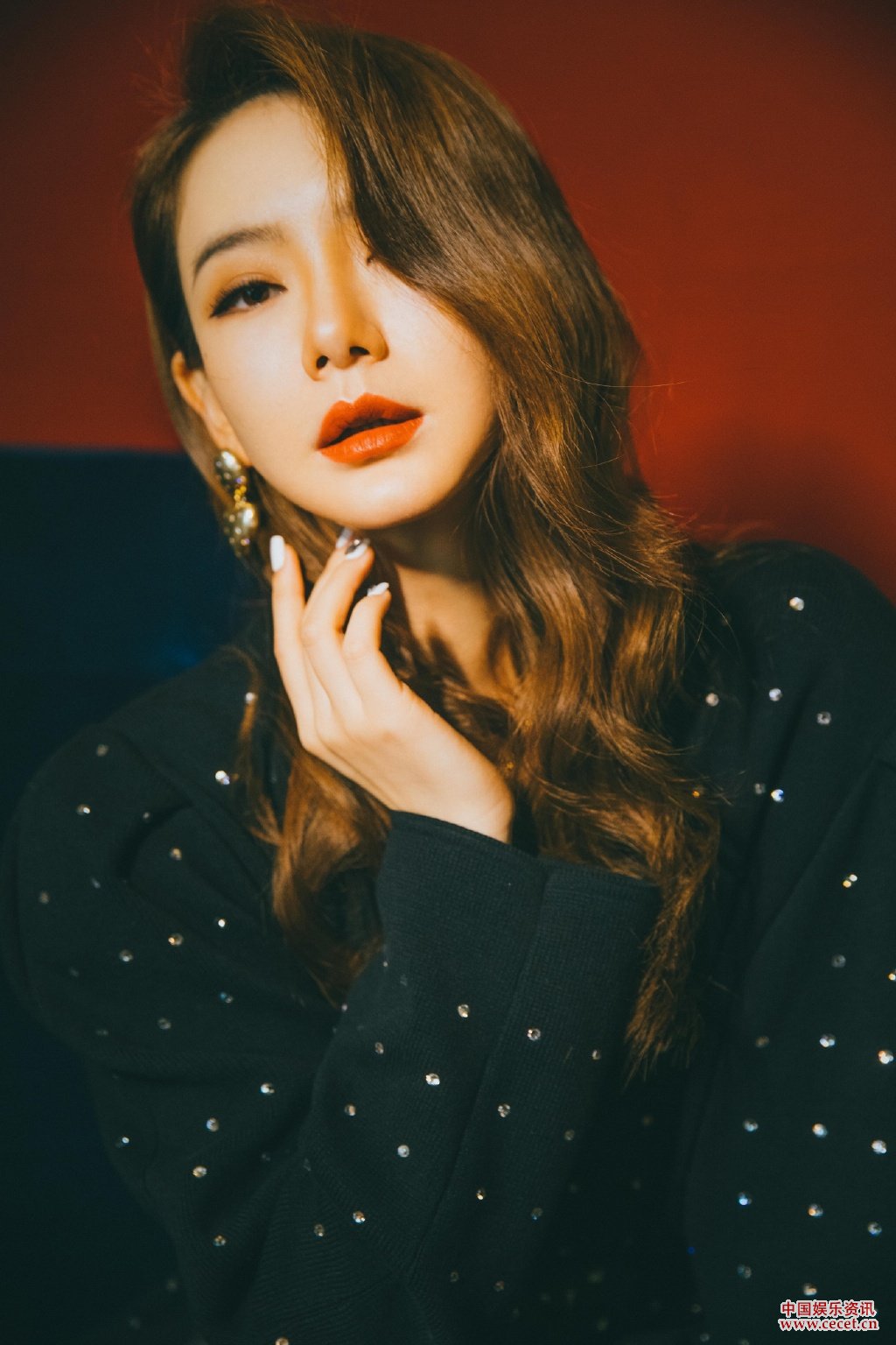 戚薇红色复古风穿搭照 秀发拂面红唇吸睛