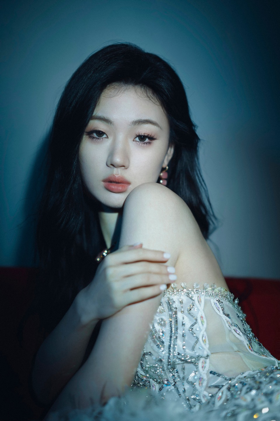 关晓彤钉珠缀以裙身