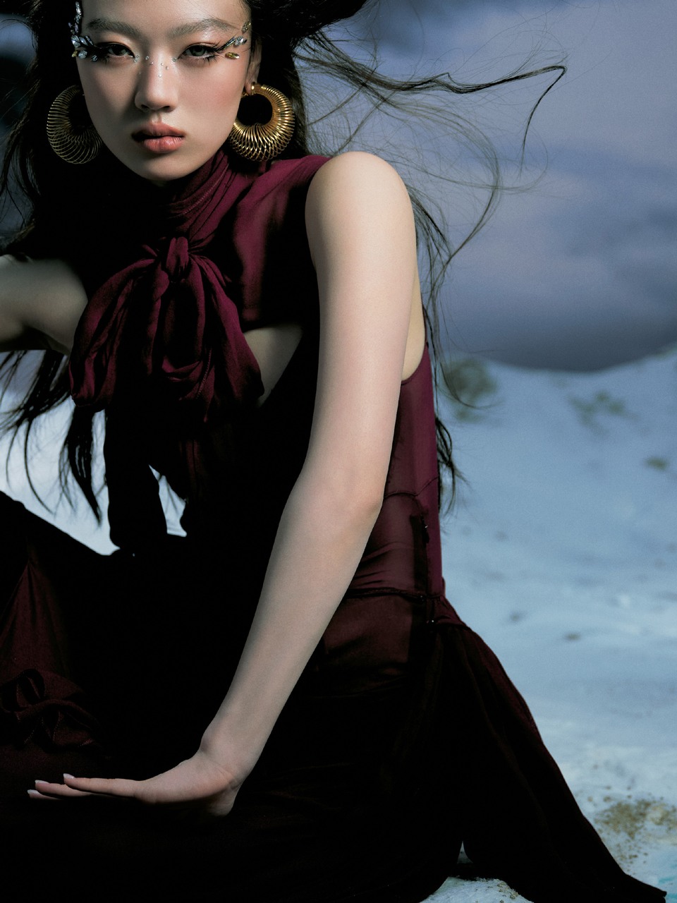 迪丽热巴暗夜深邃长裙缀满细闪星