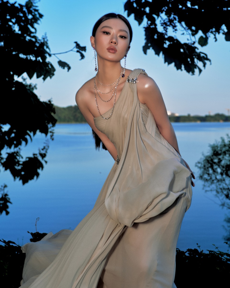 单依纯暮色轻笼浅纱曳地 树影斑驳与天地共舞