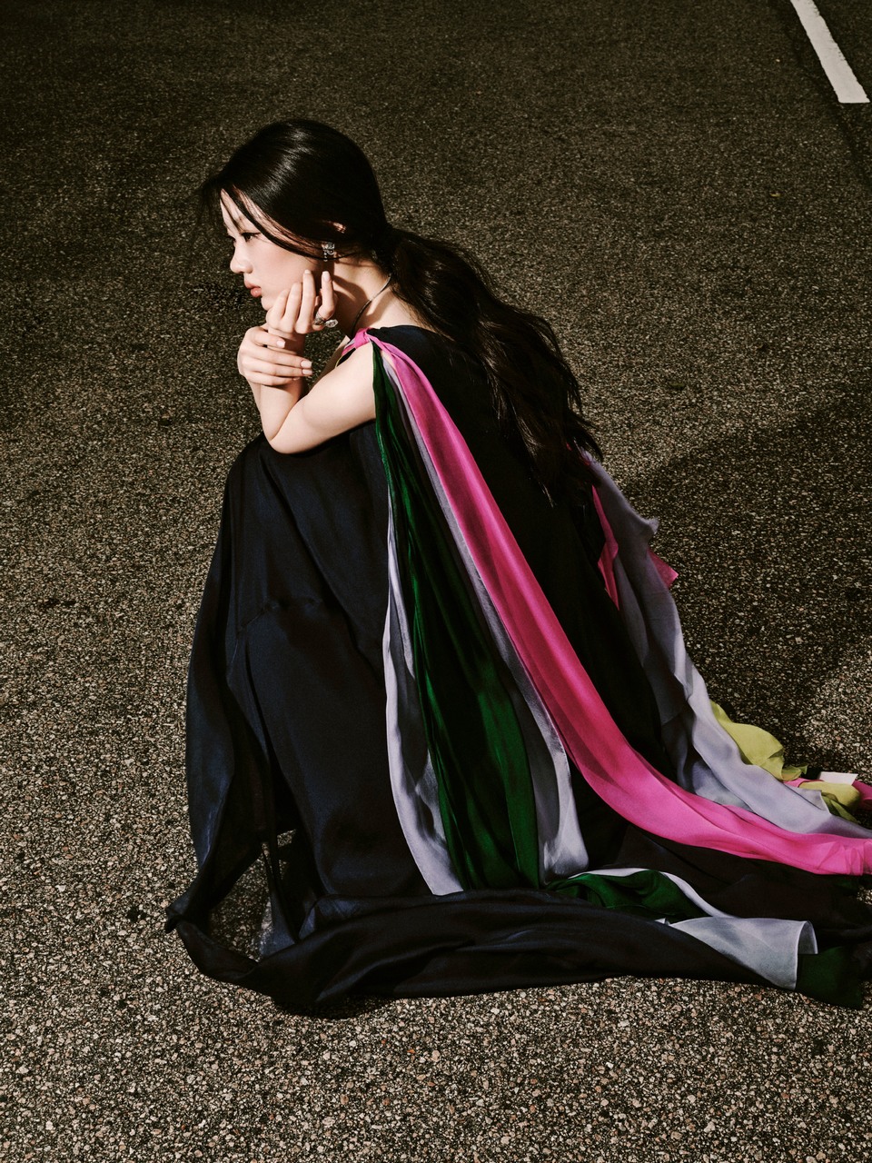 单依纯柔纱翩跹虹丝纷飞 侧影裙摆随风飘