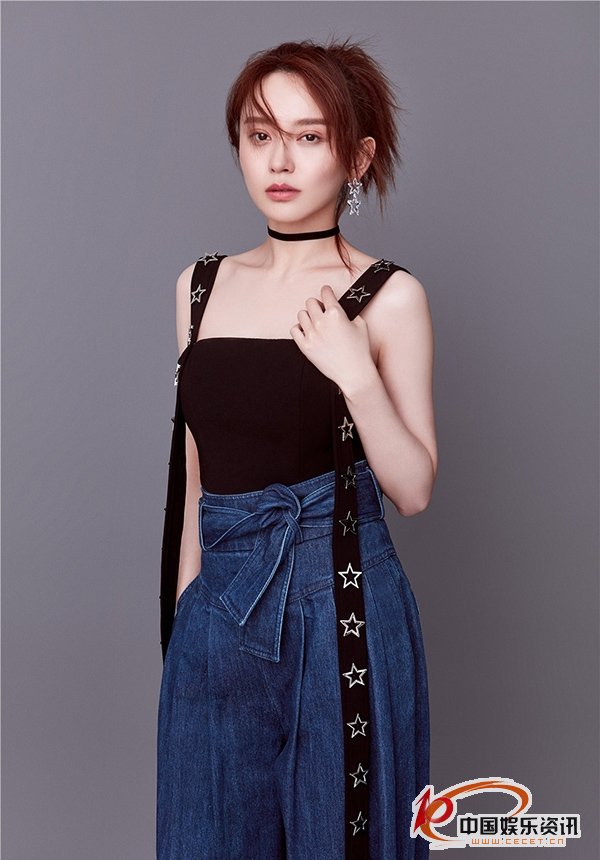 施诗吊带衣阔腿裤大片 长腿好身材展露无遗