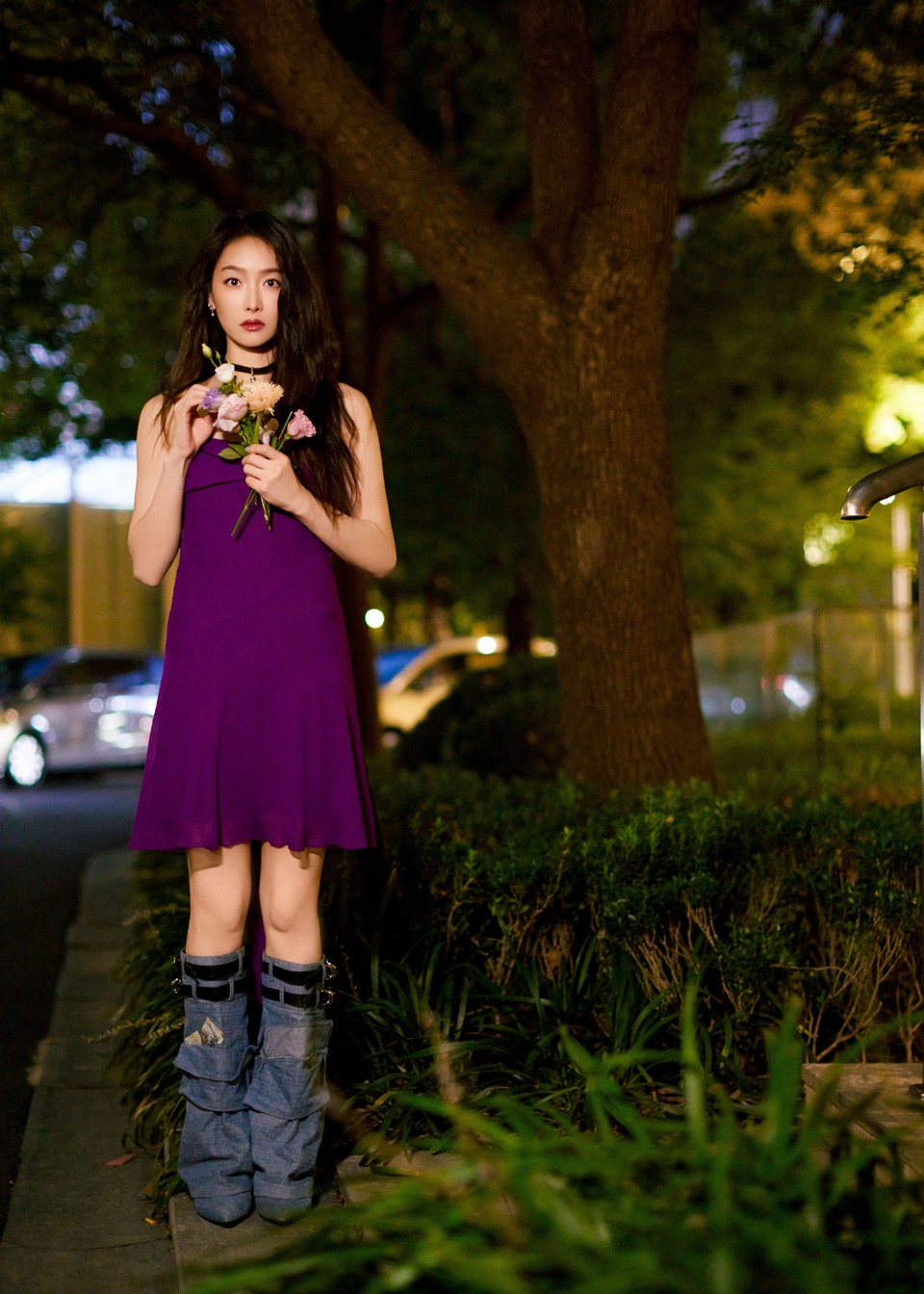 宋茜暮色花影间裙摆轻晃 将灵动温柔裹进满眼绿意