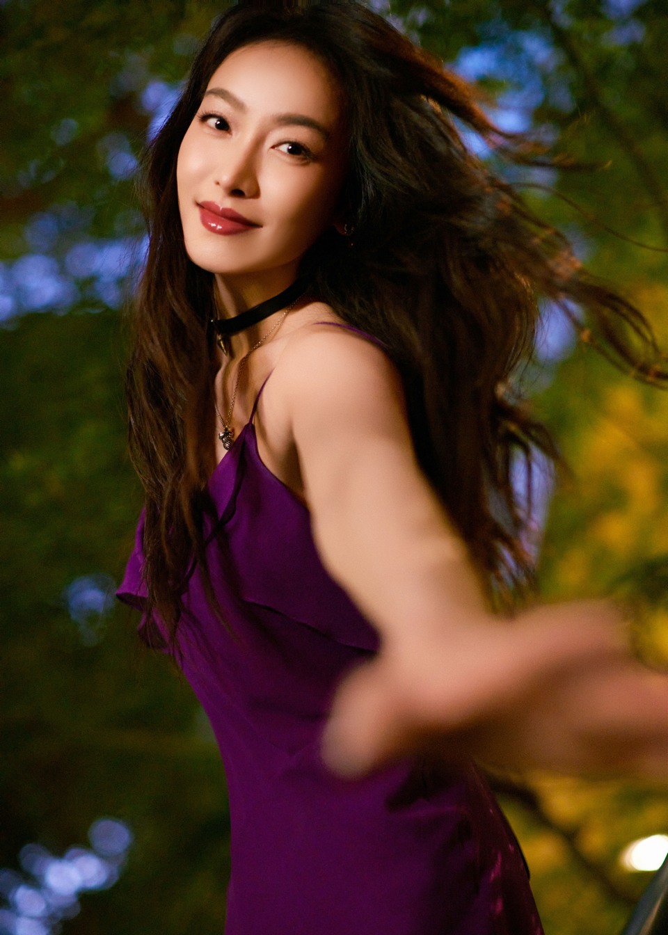 宋茜暮色花影间裙摆轻晃 将灵动温柔裹进满眼绿意