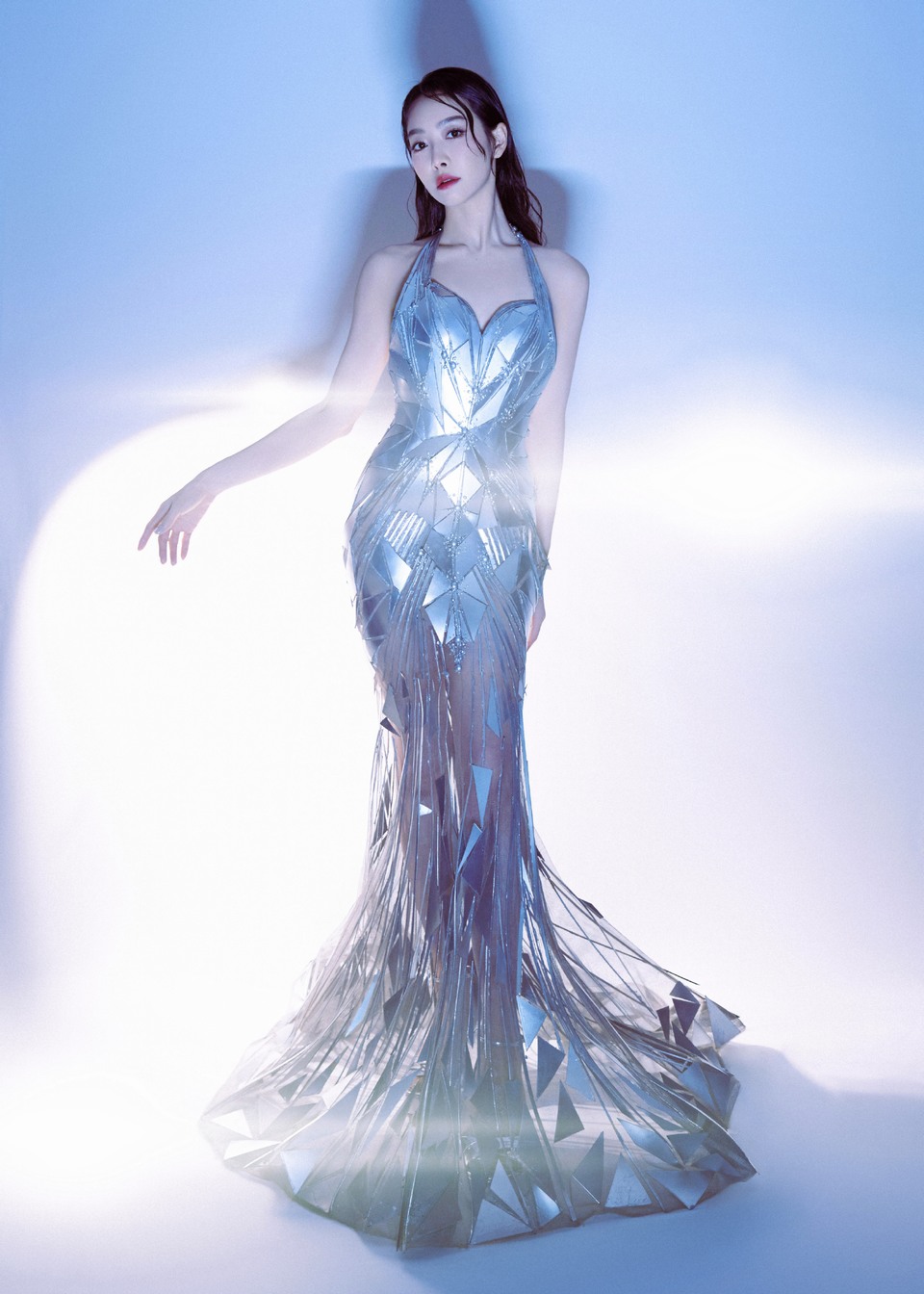 宋茜菱镜裁作裙裳 晴光漫过褶皱垂落一弧流光