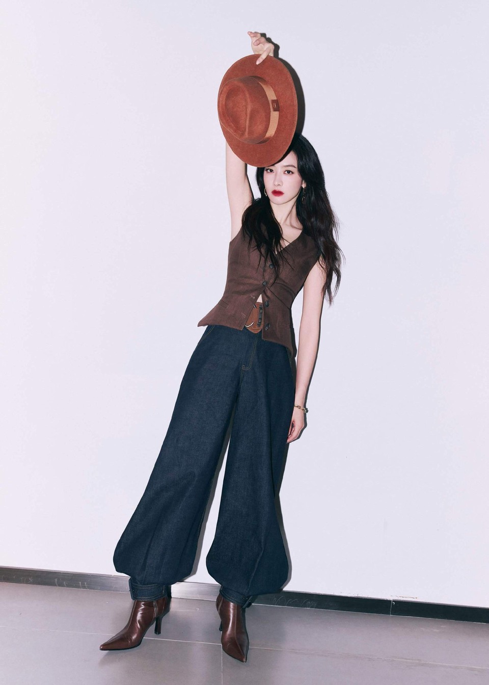 宋茜复古棕调优雅铺展 简约搭配尽显格调