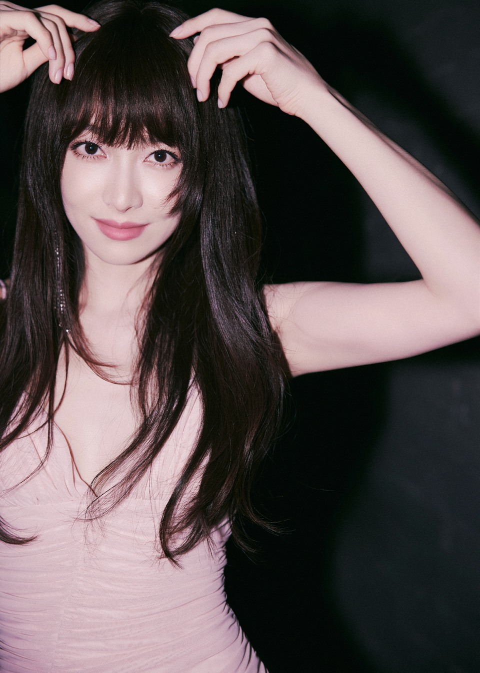 迪丽热巴暗夜深邃长裙缀满细闪星