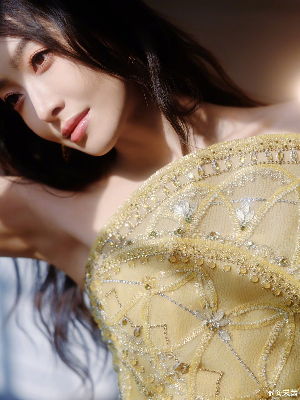 宋茜金纱轻拂暖光瞬间 清辉漫地温情满溢共赏今夜温柔