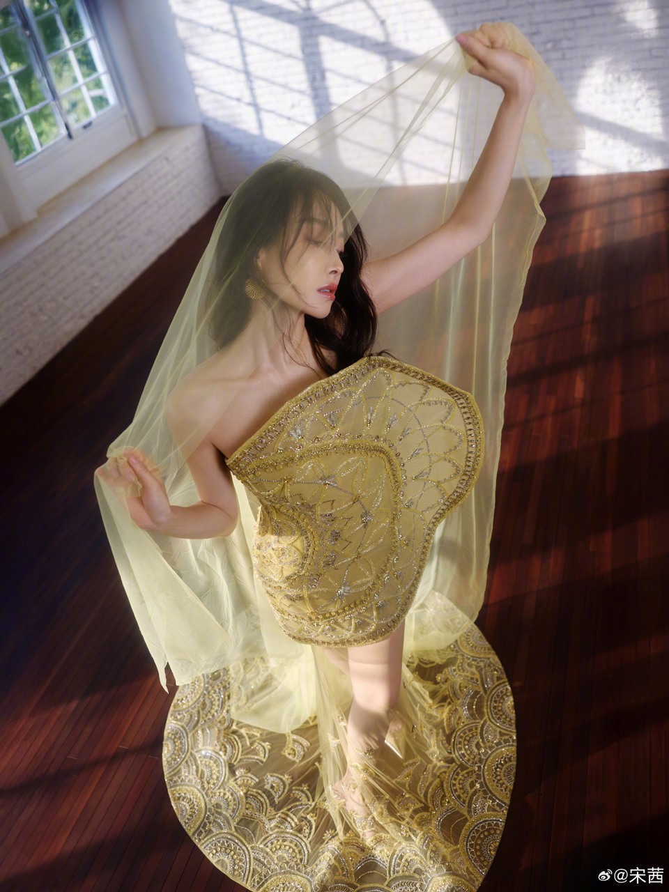 宋茜金纱轻拂暖光瞬间 清辉漫地温情满溢共赏今夜温柔