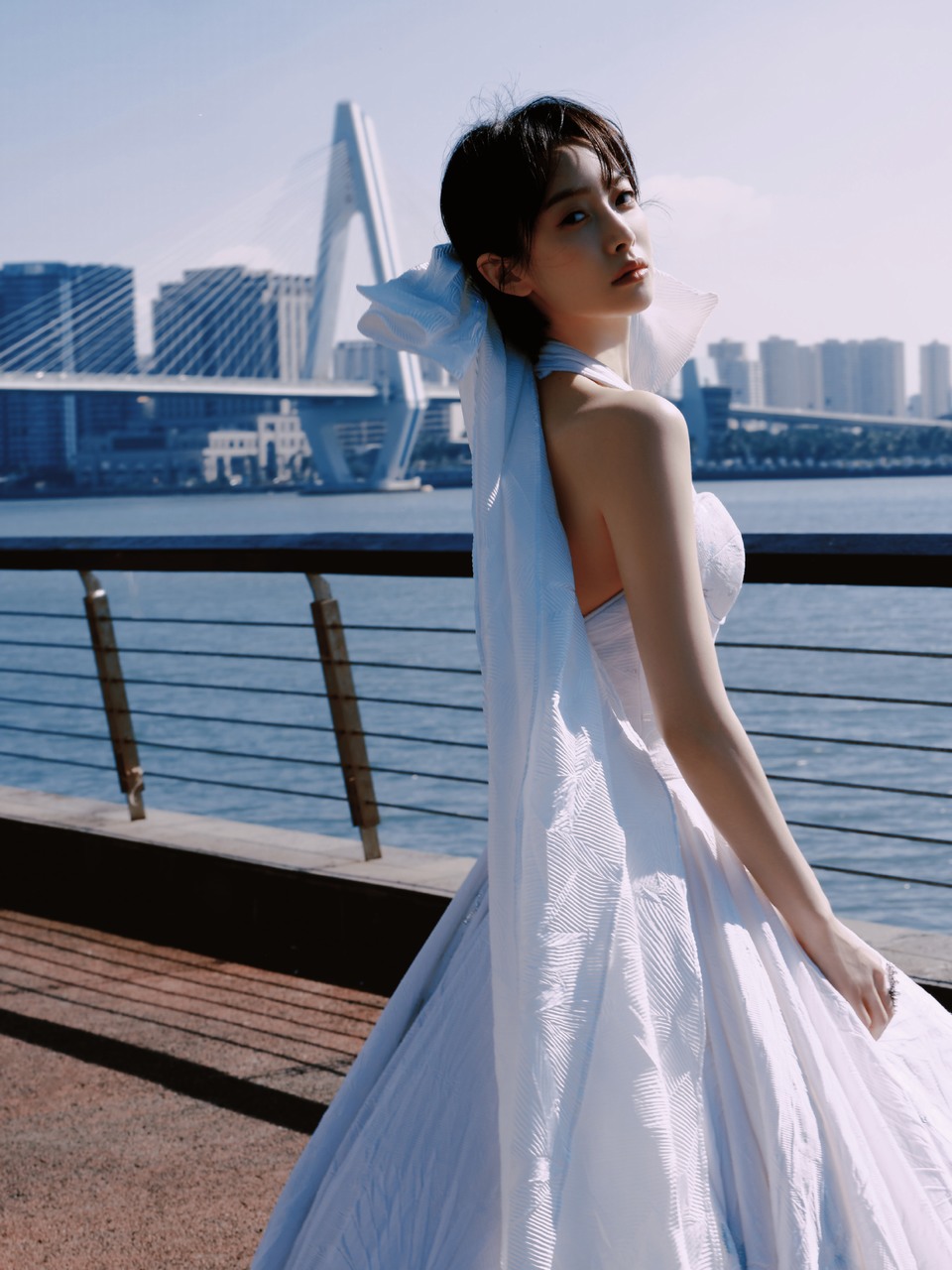 宋茜当白色裙摆掠过 随性的节奏便融进了浪花的节拍