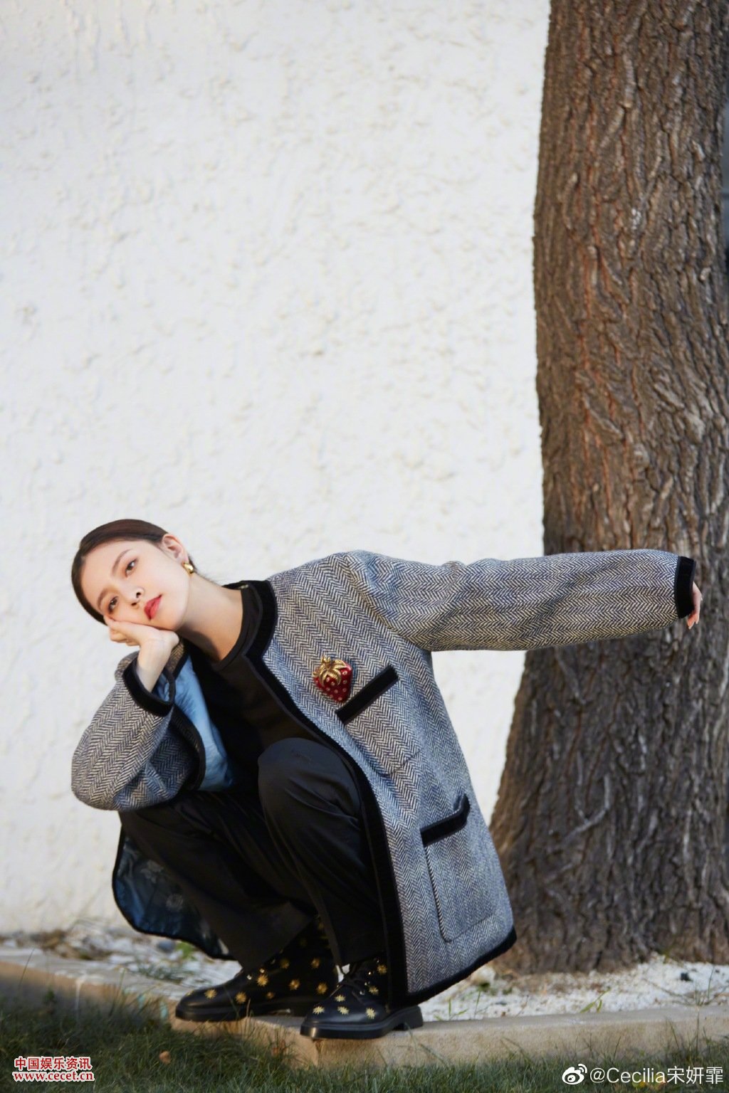 宋妍霏西装外套换季照 尝试酷酷的御姐style