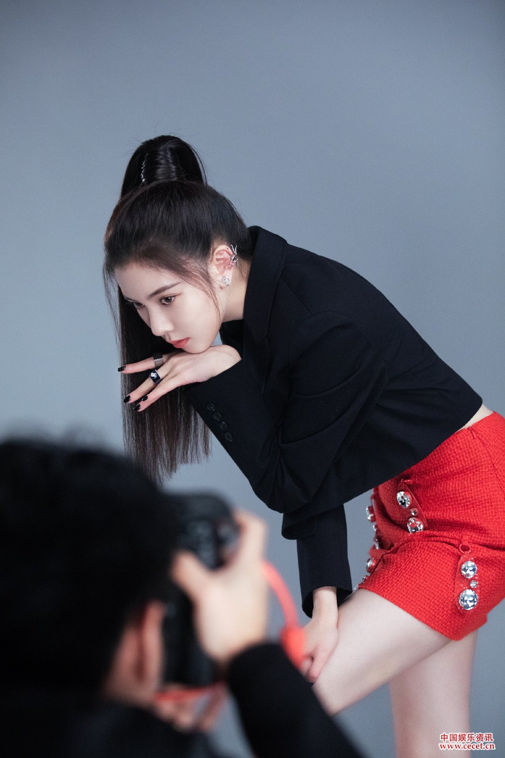 宋妍霏黑衣红裙 酷飒的高马尾闪耀个性光芒