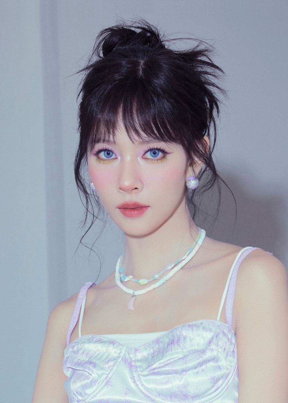 宋妍霏缎带绕肩紫纱叠层 俏皮灵动诠释满分少女力