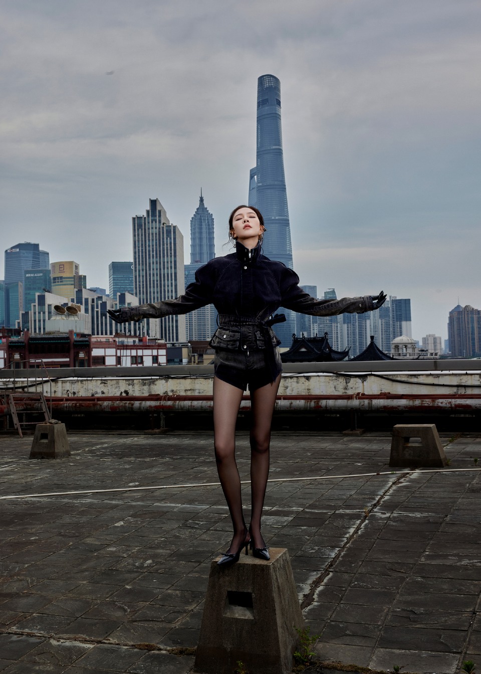 宋妍霏酷黑套装率性气场全开 摩登与干练完美融合