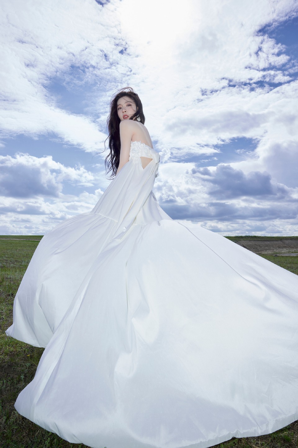 宋妍霏白纱原野绮梦共赴 蓝天绿草间绮梦绽放