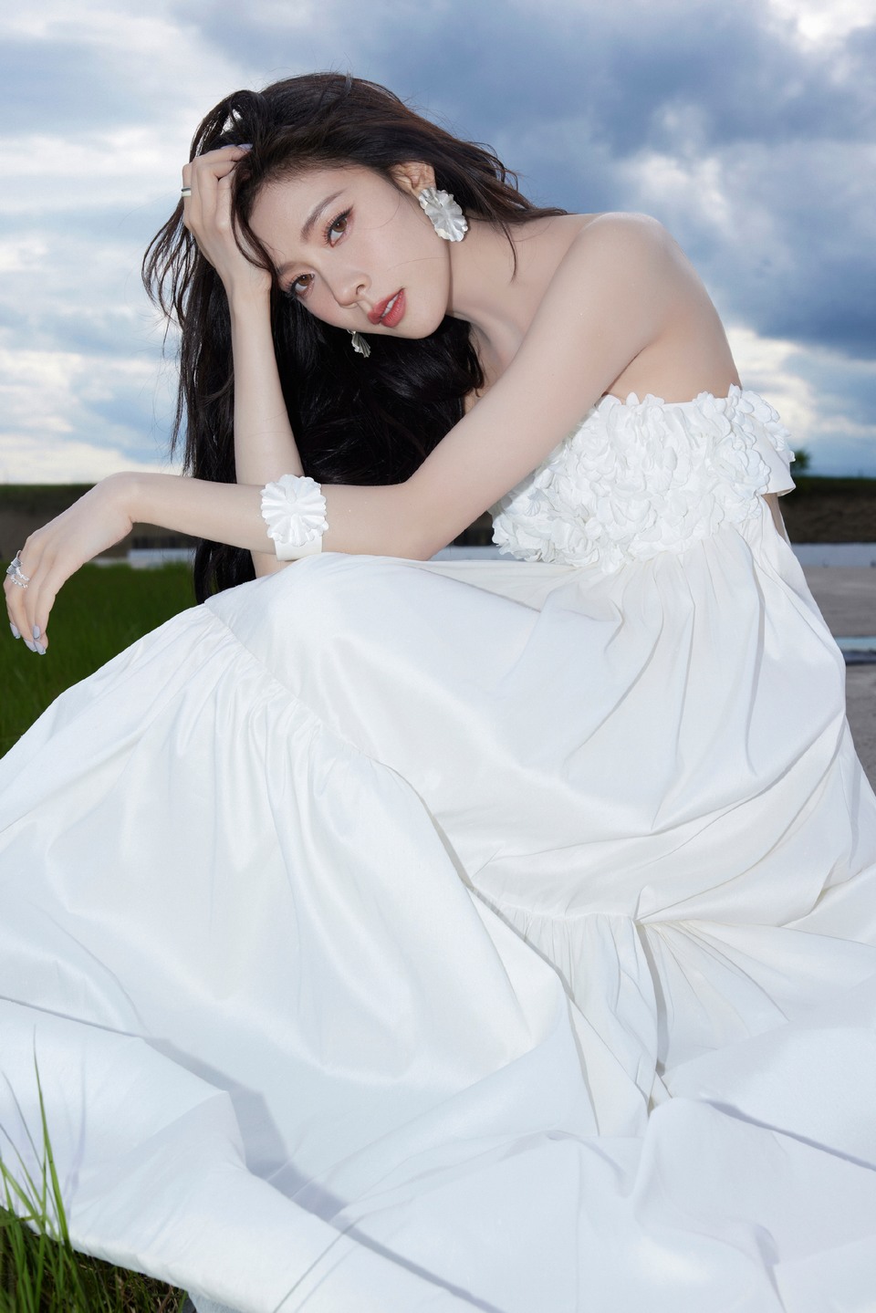 宋妍霏白纱原野绮梦共赴 蓝天绿草间绮梦绽放