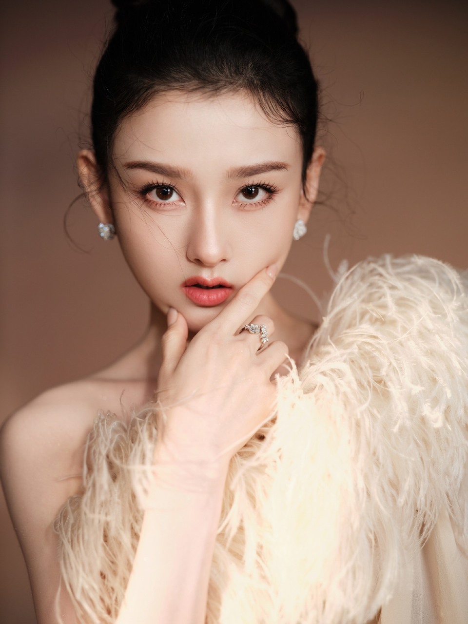 赵丽颖沿轮廓描画釉色