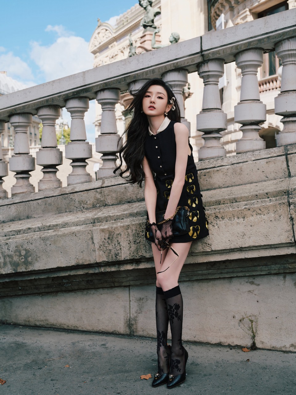 宋祖儿漫步巴黎 法式浪漫与黑色相融独一无二