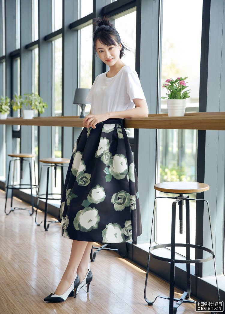 孙铱曝光夏日居家写真 花色连衣裙清纯靓丽