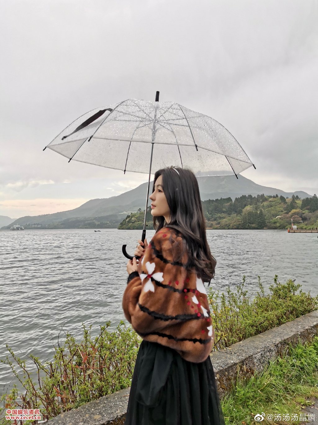 汤晶媚旅行美照九宫格 精致五官优雅气质相映衬