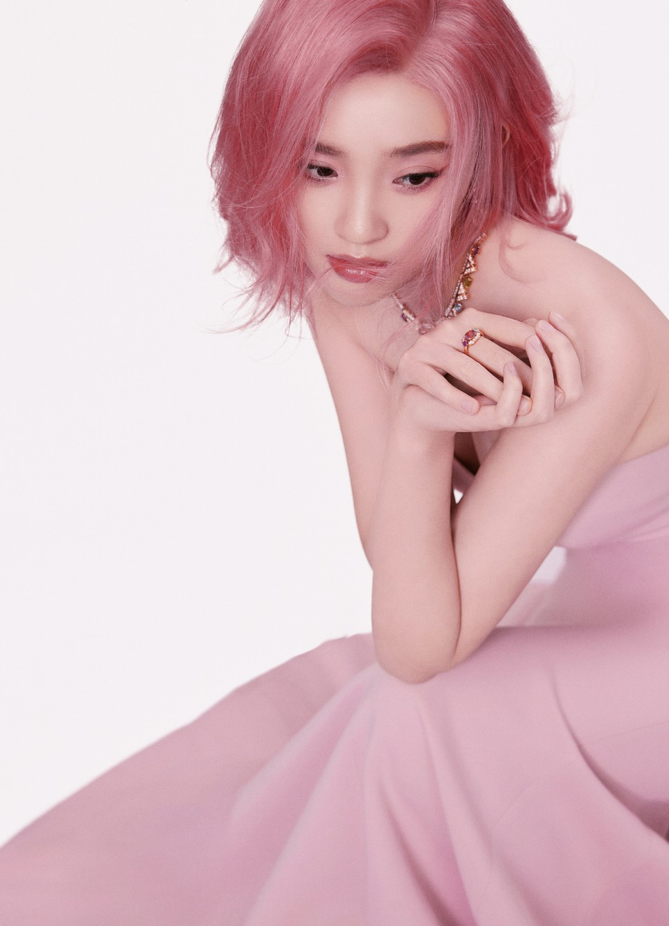 唐艺昕淡粉人鱼裙清新灵动 顾盼生辉怦然映梦