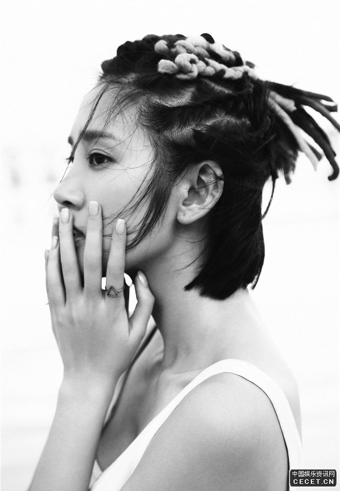 唐艺昕黑白质感大片 白色无袖上衣优雅妩媚