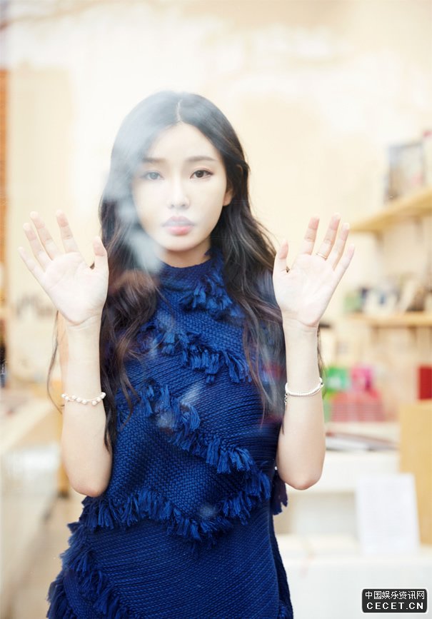 童菲深蓝系写真曝光 无袖连衣裙显得韵味十足