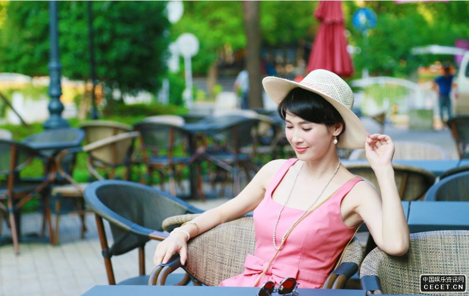 童蕾绿植之中私服大片 纯色连衣裙温婉大方