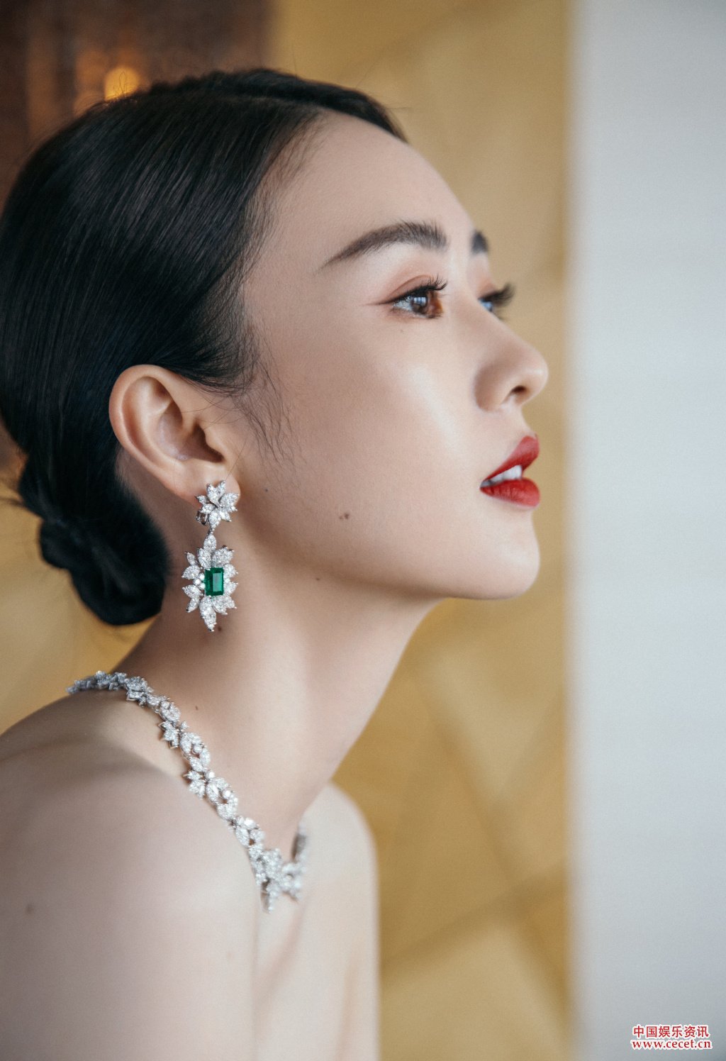 童瑶墨绿色丝绸抹胸长裙 优雅唯美尽露摩登之感