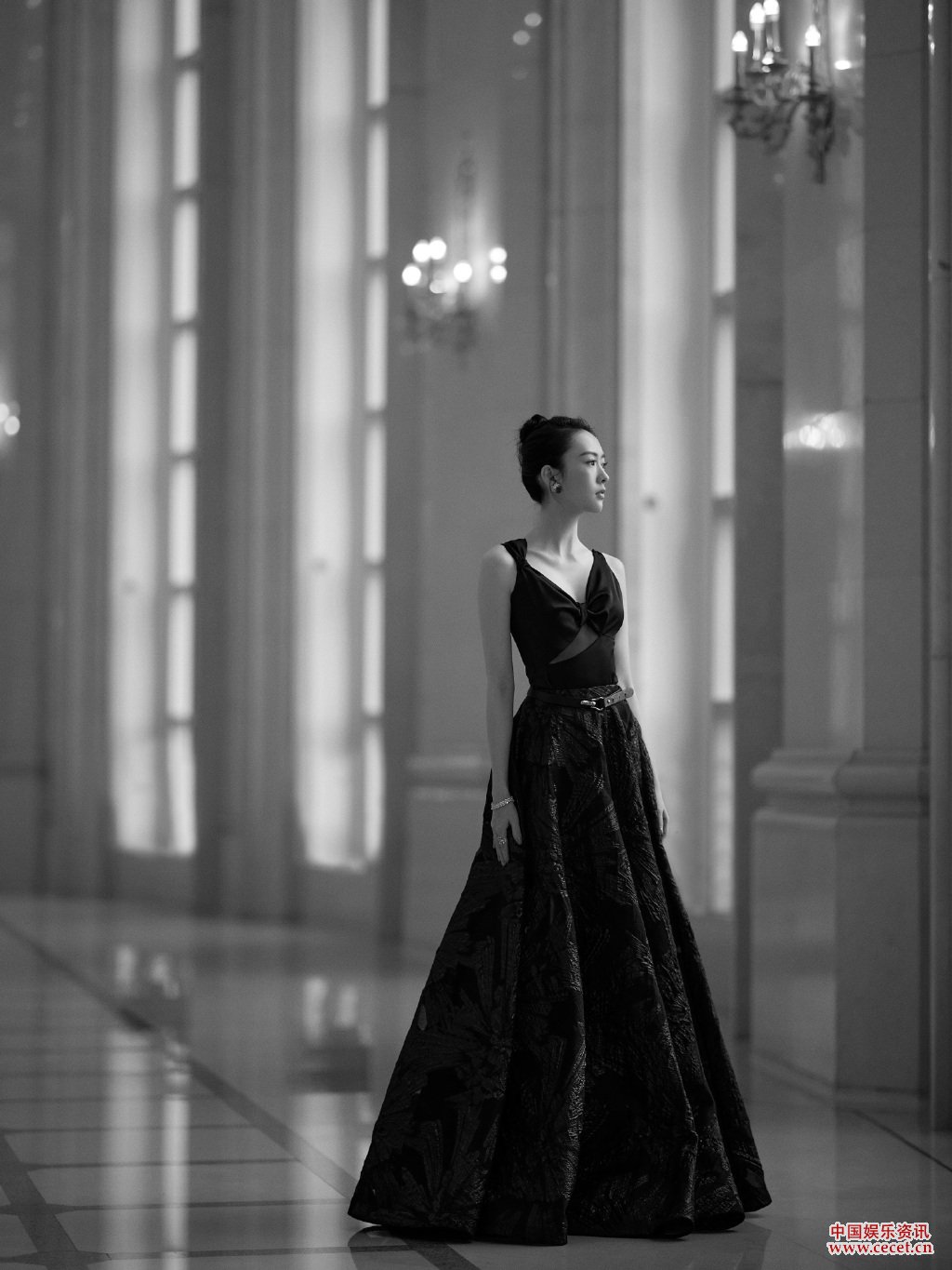 童瑶黑色镂空露背礼服 光影变幻自信洒脱
