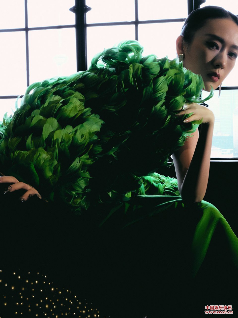 童瑶千片绿羽高级定制礼服 释放灵动绿意之美