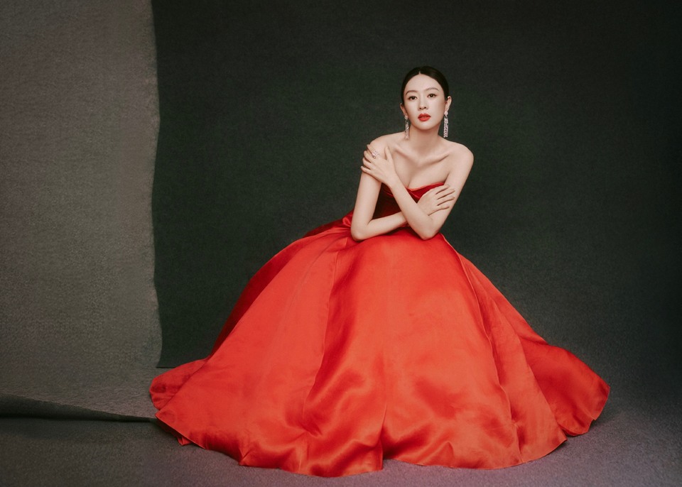 关晓彤鎏金裙优雅公主