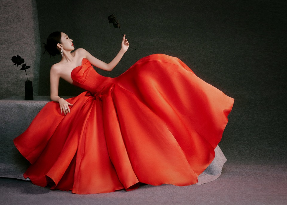 童瑶与花共生于红色中绽放 在热烈与明媚间漾出花意